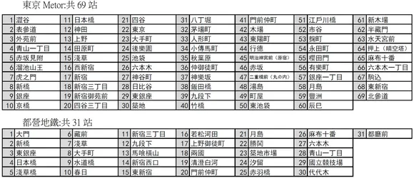東京地鐵重要景點站: