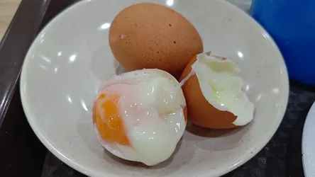 道地的吃法是會把蛋全打在盤子上,然後撒上胡椒鹽跟醬油。我也稍微試了一下,但覺得好像只要撒上胡椒鹽就好,多了醬油味道就怪怪的了...