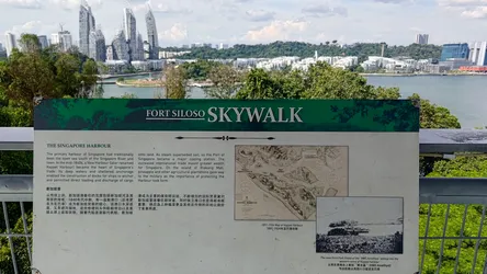 在西樂索(Siloso)這個區域,有兩個特別的地方,我覺得很值得推薦給大家-西拉索炮台(Fort Siloso)和天空步道(Skywalk),可以選擇搭BUS A或Beach Shuttle在Siloso Point下車,步行幾步就能到天空步道,天空步道即是通往西拉索砲台,在搭電梯上Skywalk前就可以看到一個小砲台的模型。