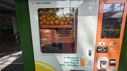 另外提一下,新加坡到處都有IJOOZ柳丁汁現榨販賣機,便宜又好喝(SGD $2 約 TWD $47),我幾乎每天都在喝,但有些熱門地方會變比較貴...像這裡就要SGD $3約 TWD $71,機場的也是。