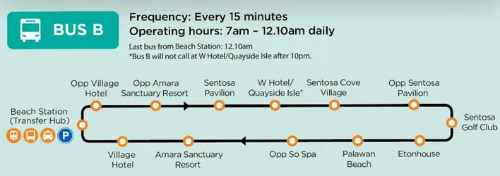 島內有三條免費的循環巴士,BUS A, BUS B, 和一條BEACH SHUTTLE,BUS A和BUS B會經過各個Hotel