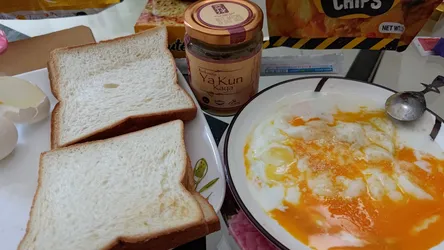 回到台灣後用亞坤咖椰醬做咖椰吐司配雞蛋